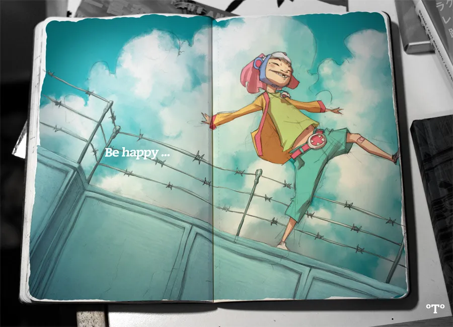 Наш старый знакомый из «Железобетона» в акварельном небе на заборе с колючей проволокой (FebDD 10 / ~t-wei)