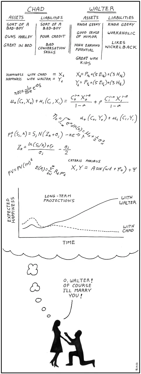 По мнению брачных адвокатов, успешные и стабильные пары эту диаграмму в обязательном порядке вписывают в одно из приложений к брачному контракту. А те, кто не вписал, маются потом всю жизнь, бедолаги.
